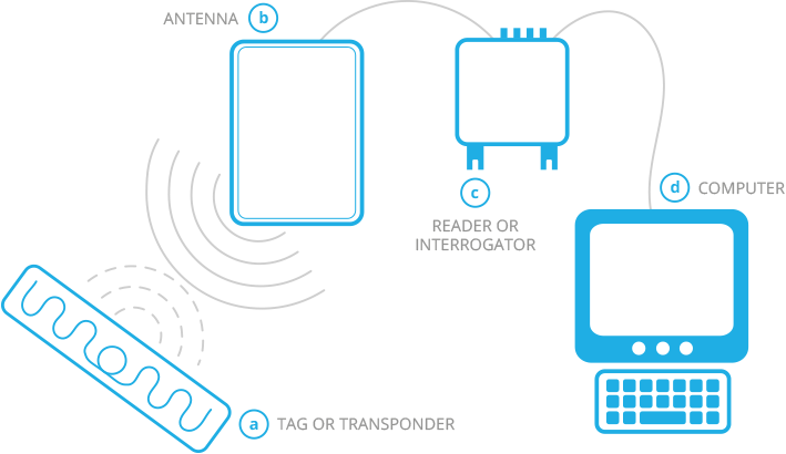 Primero se etiquetan los objetos con etiquetas RFID lo que permite a los usuarios identificar de forma única y automática dichos objetos, además que también permiten rastreo de inventario y activos. El RFID aumenta el nivel de la tecnología de identificación automática al permitir que las etiquetas puedan ser leídas sin que estas tengan una línea de visión, y dependiendo del tipo de RFID, el rango de lectura puede ser desde unos cuantos centímetros hasta más de 20 metros.